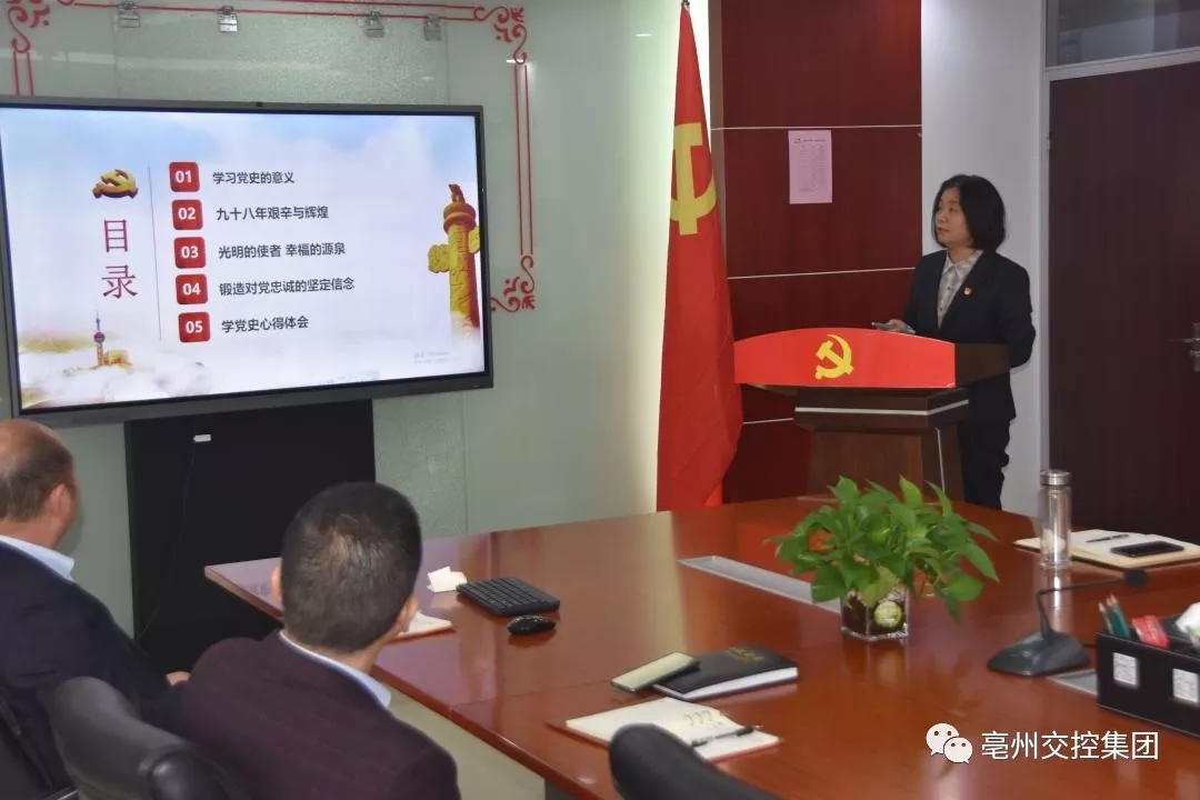 王平同志結(jié)合目前正在開(kāi)展的“不忘初心、牢記使命”主題教育,從學(xué)習(xí)黨史的意義、九十八年艱辛與輝煌、光明的使者幸福的源泉、鍛造對(duì)黨忠誠(chéng)的堅(jiān)定信念、學(xué)黨史心得體會(huì)等五個(gè)方面,帶領(lǐng)大家回顧了我們黨從苦難到輝煌的光榮歷史,感悟我們黨艱苦卓絕的奮斗精神,同時(shí),從4個(gè)方面分享了自己學(xué)習(xí)黨史的心得體會(huì)。