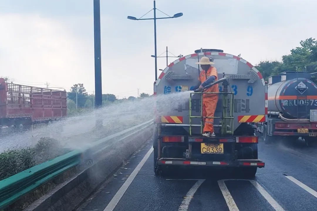 對(duì)易發(fā)生車轍、擁包、裂縫等病害的路段實(shí)施重點(diǎn)監(jiān)控,動(dòng)態(tài)調(diào)整灑水作業(yè)路線與頻次,有效降低路面溫度、預(yù)防爆胎風(fēng)險(xiǎn)。同時(shí),合理調(diào)整養(yǎng)護(hù)作業(yè)時(shí)間,采取“早開(kāi)工、晚收工、午間休”錯(cuò)峰作業(yè)模式,為養(yǎng)護(hù)人員配備專業(yè)透氣防曬服等防護(hù)裝備,并在每次作業(yè)前嚴(yán)格執(zhí)行安全交底流程,確保高溫作業(yè)安全“零事故”。