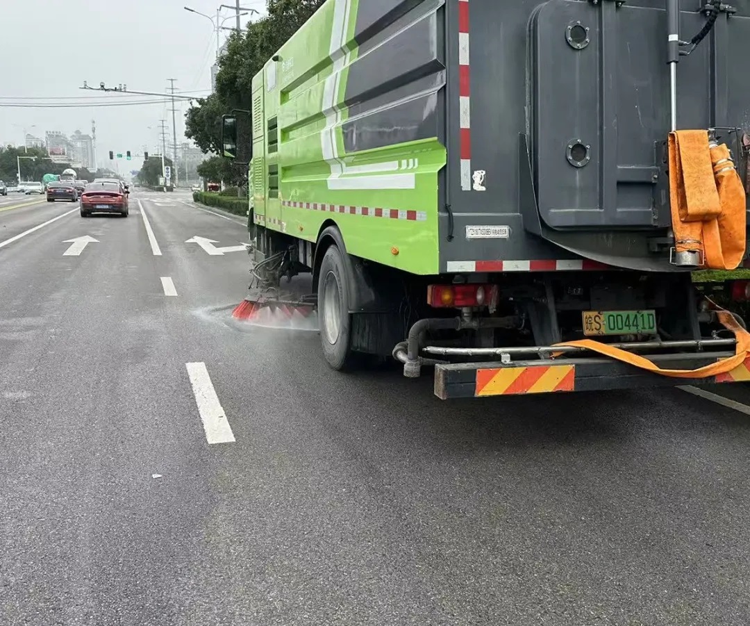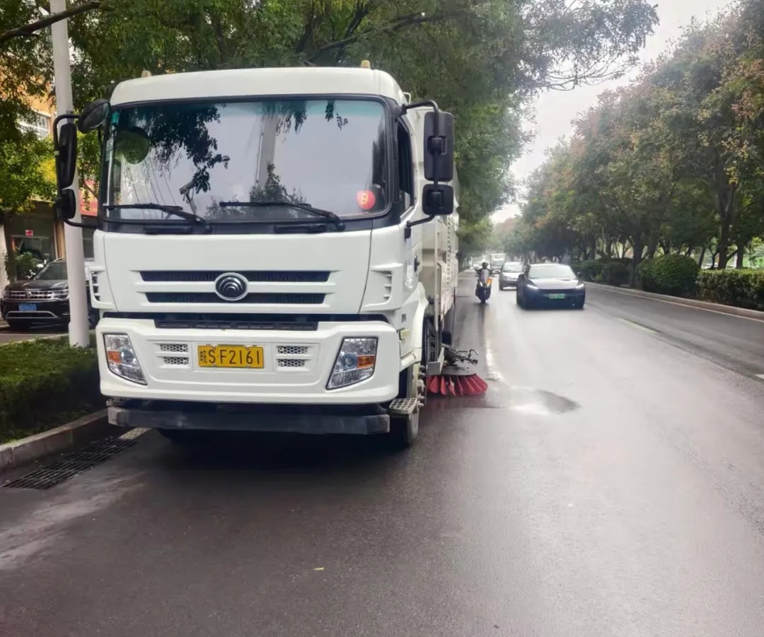 充分發(fā)揮機(jī)械化作業(yè)優(yōu)勢,針對連綿雨天,重點(diǎn)強(qiáng)化道路濕式洗掃,靈活調(diào)整作業(yè)方案,合理確定作業(yè)頻次,有效清理被雨水黏附的塵土與落葉,杜絕二次揚(yáng)塵,同時,在主干道、商業(yè)區(qū)等重點(diǎn)區(qū)域巡回作業(yè)、無縫銜接,確保路面無積水、無雜物,全面提升保潔效率。