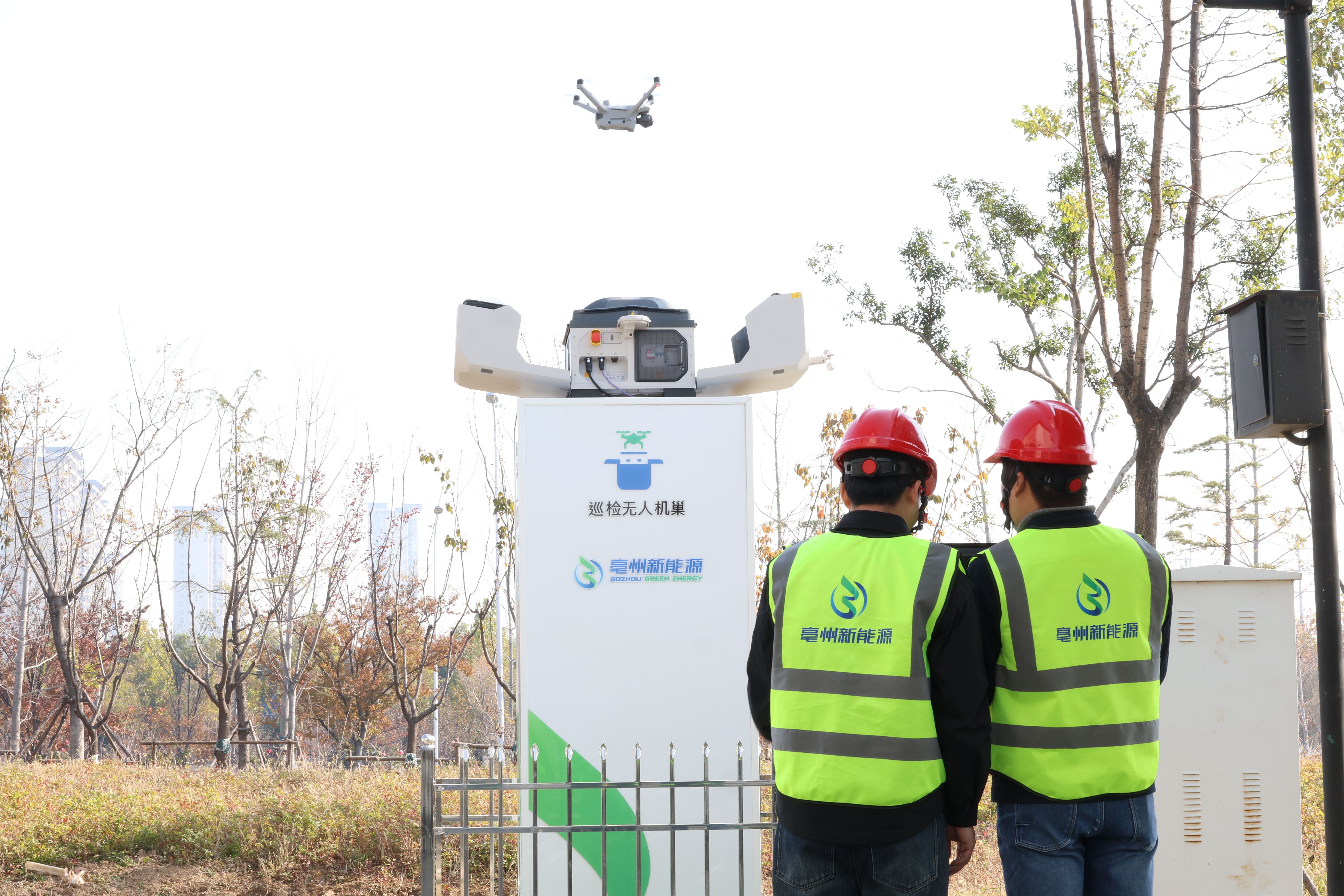 在亳蕪園區(qū)光伏場(chǎng)站和商務(wù)中心光儲(chǔ)充一體化場(chǎng)區(qū)內(nèi),無人機(jī)從機(jī)巢平穩(wěn)升空,對(duì)光伏組件、儲(chǔ)能柜、電纜線路等展開全方位智慧化巡檢。日前,新能源公司智慧“無人機(jī)巡檢”示范場(chǎng)景實(shí)現(xiàn)首飛。